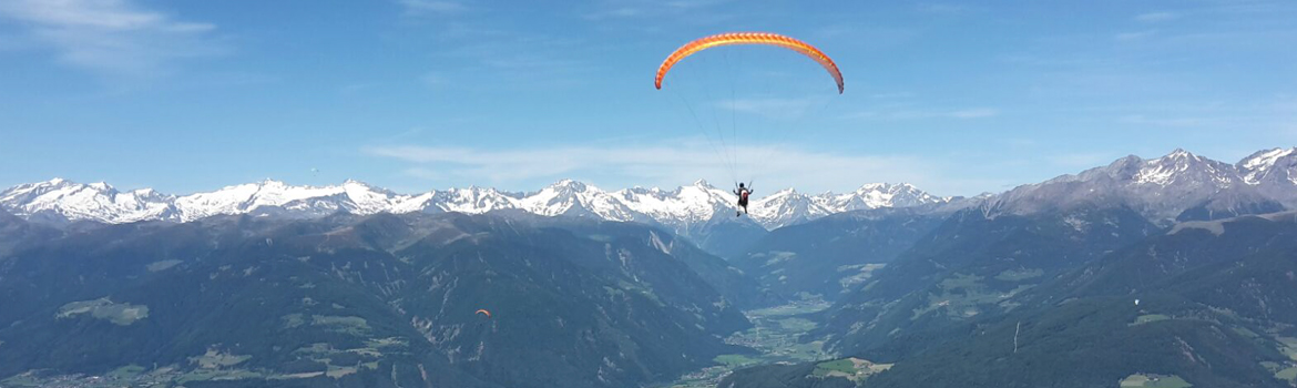 Paragliding Holland has found a beautiful flying spot in a side valley of the Pustertal valley, a very popular holiday spot in South Tyrol, Italy. Ahornach is a wonderful place to teach: nice spacious take-off, large landing area and favorable flight conditions. The surroundings here are also very beautiful: we are right on the border of the impressive snowy Alpine main massif towards the north and the overwhelming Dolomites range to the south.