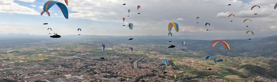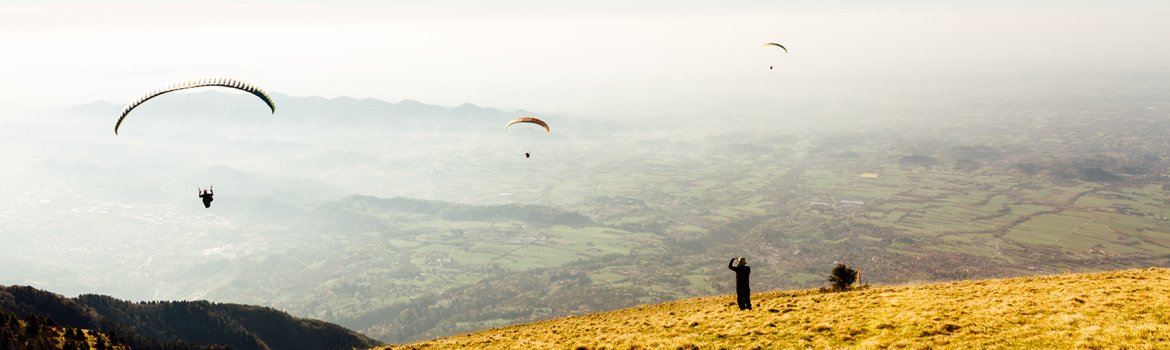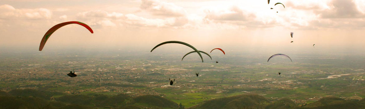 We have a choice of 5 starting places, all on the Monte Grappa mountain: Stella (520 m), Costa Lunga (750 m), Col Serai (970 m), Da Beppi (767 m) and Monte Grappa (1550 m), and two landing areas. During the course we always try to fly from as many different take-offs as possible. The structure of the landscape ensures good thermals, so for the (half) advanced pilot it is therefore perfectly possible to make longer flights.